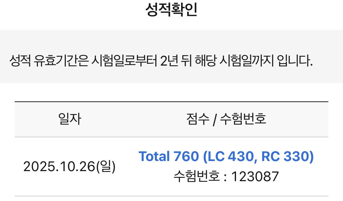 ¼ö° ÈÄ TOEIC, 760Á¡ ´Þ¼º!